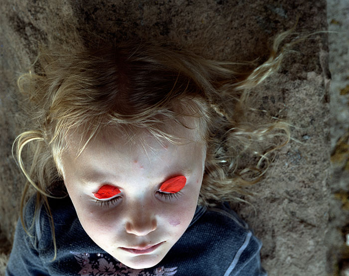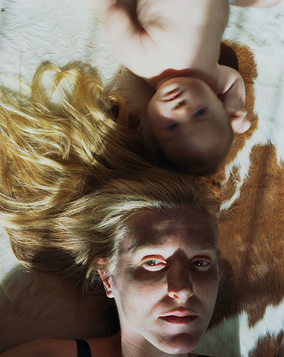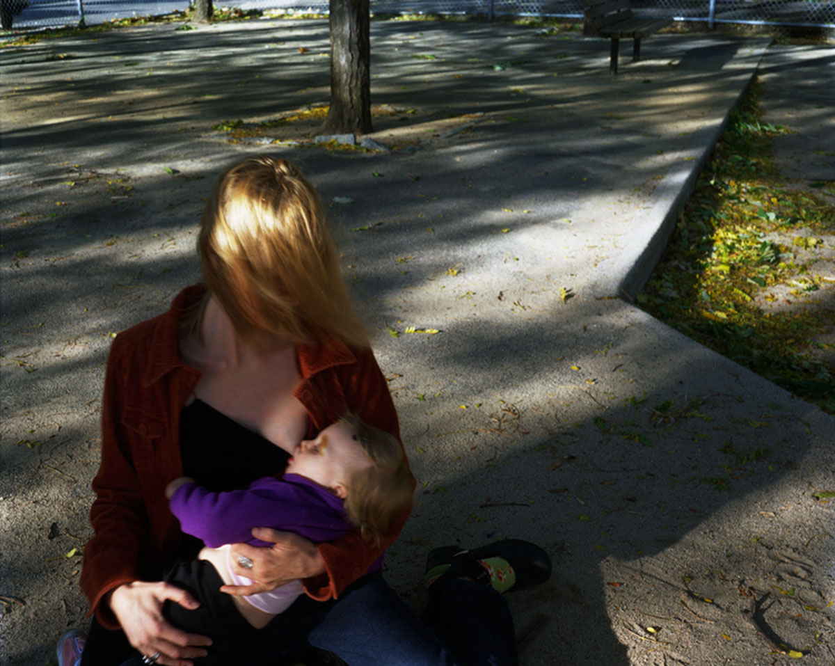 This work began after the birth of my first child and while I was in graduate school, when I began photographing myself, my new daughter, and my mother. When my second daughter was born three years later I photographed her as well. Influenced by Northern Renaissance paintings and my childhood homes in churches I used my own life to explore the mother child archetype. All works are made by 4x5" color negative film.