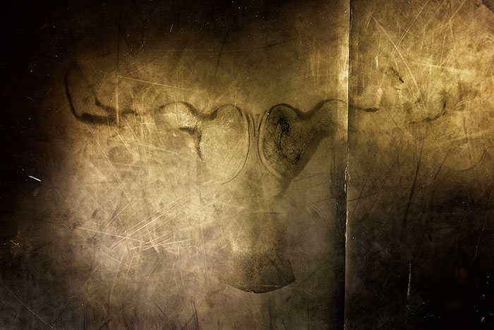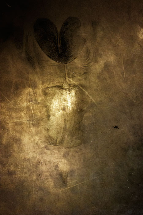 The object of Ri Anderson interest is not the human body itself but the marks and traces as an evidence of being. Her photos of disembodied bodies look like a haunting and unerring reminiscence of the wet plate photography. Anderson was intrigued by the aspect of Mysticism focused on the nonmaterial and spiritual level of her inspiration. The photographic portraits of her Mexican circus troupe family and mystical idea of the fleeting moment leads her into an abstract painting that French conceptual artist Yves Klein labeled 'Anthropometry' in the 1950s. In her experiments with the photos of the human frottage, she reaches the strong spiritual connection with the models. With the genuine fascination of the indefinable she literally transmits the experience of the human object that reveals on the floor a spiritual impression of their bodies as an outline of the human soul.