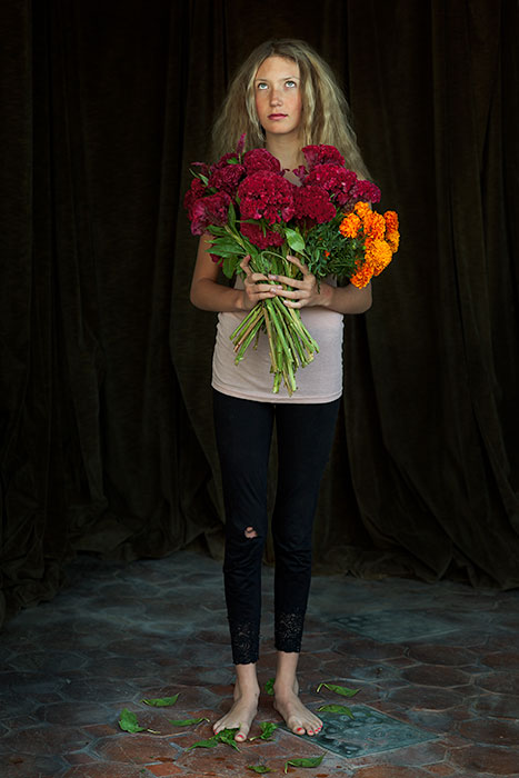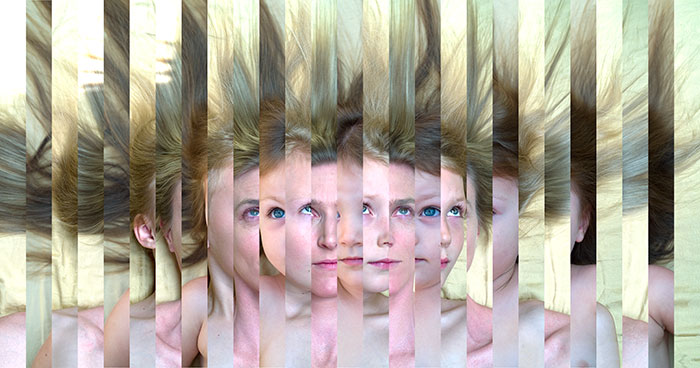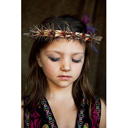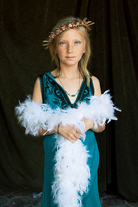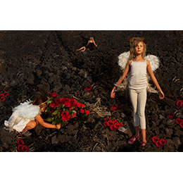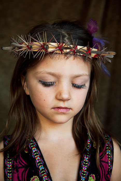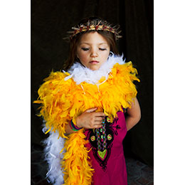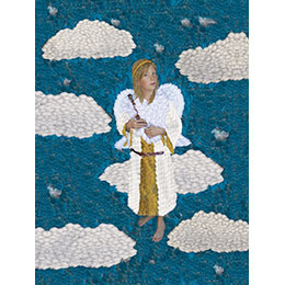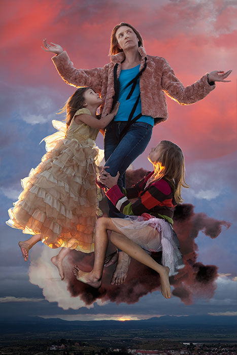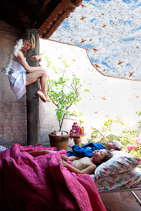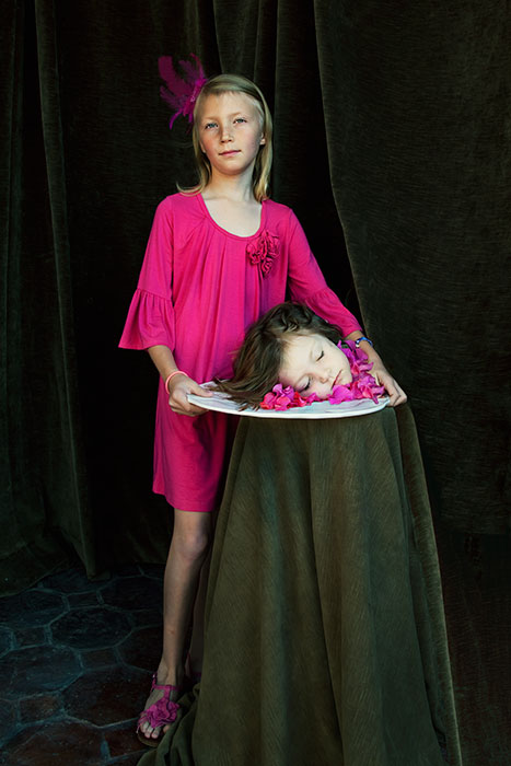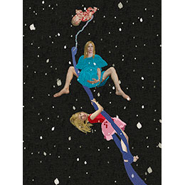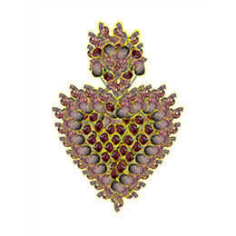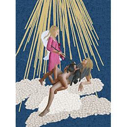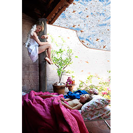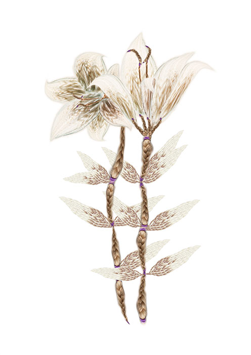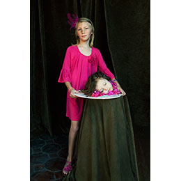 "Sangre de mi Sangre" literally means "Blood of my blood." Part fantasy, part outlet, part passage, this autobiographical work explores the agony and ecstasy of family life, using elements of Renaissance painting, Mexican Catholic symbolism and collage, as well as Victorian hair collection and games to explore the physical and emotional connections between mother and daughters in our Mexican-US bicultural life.
