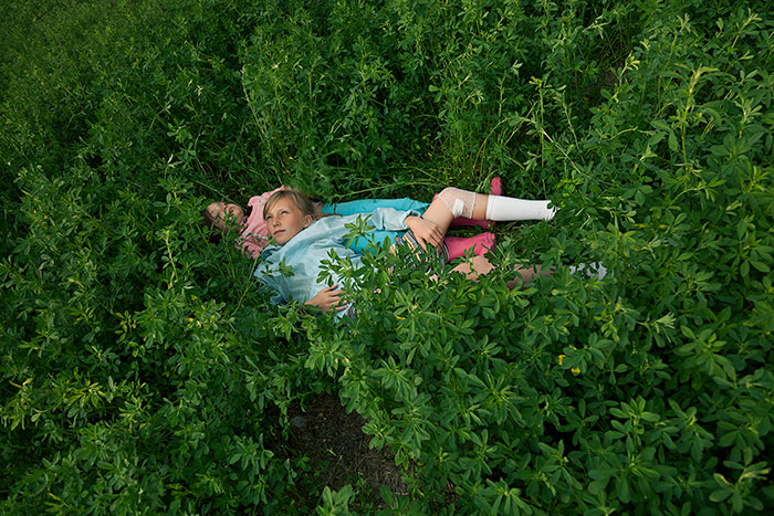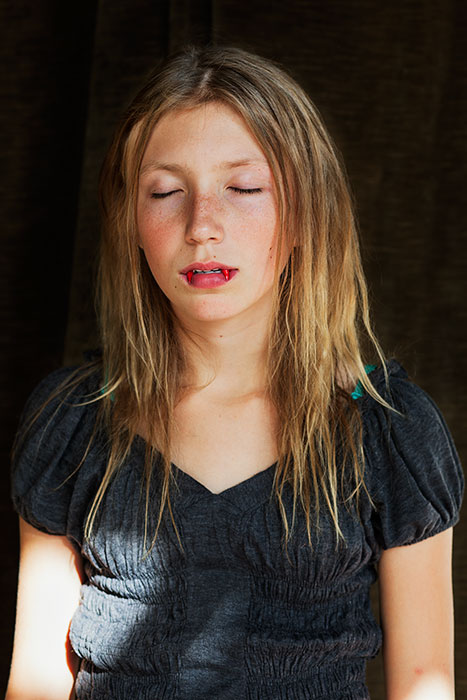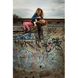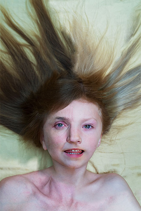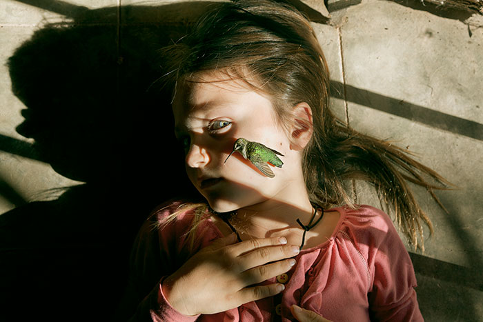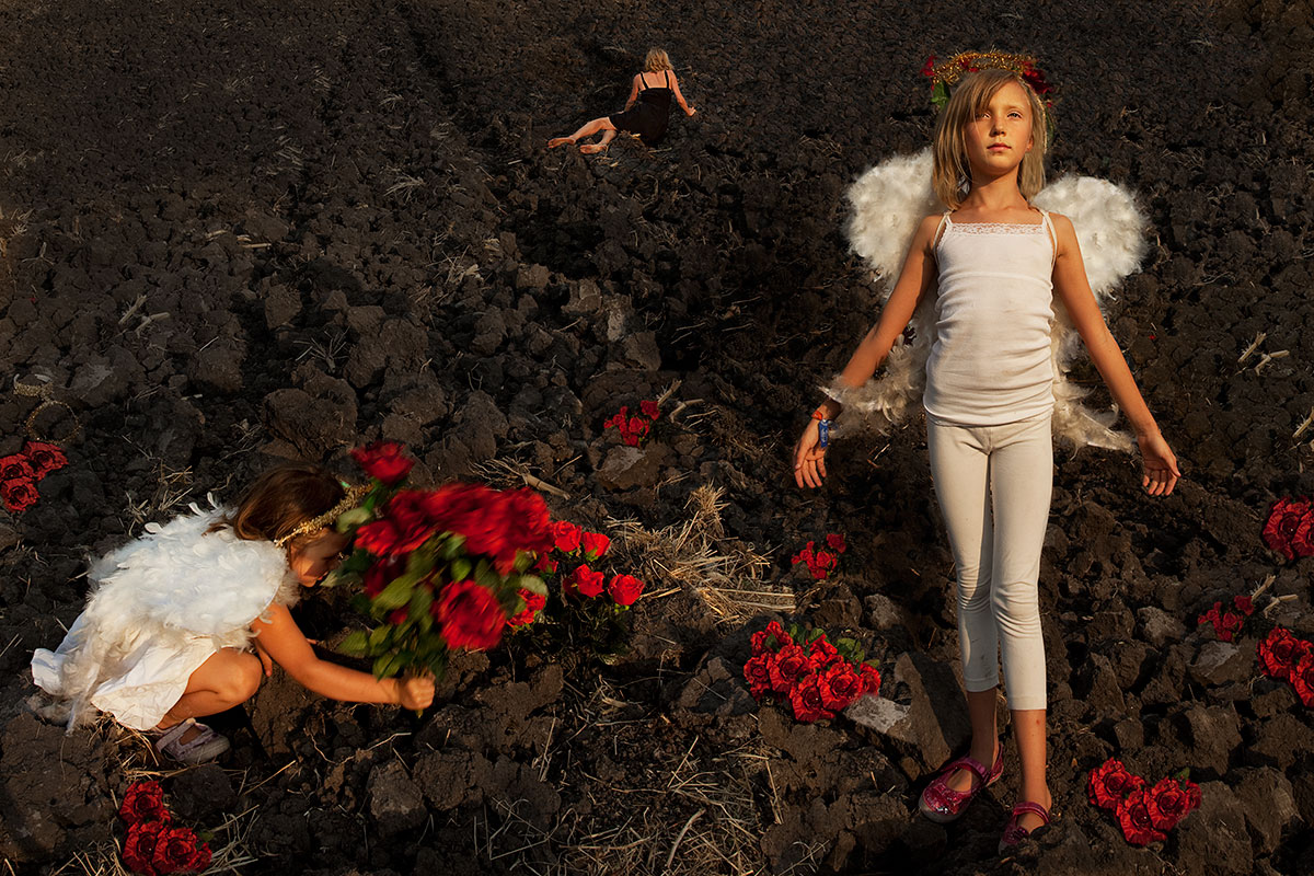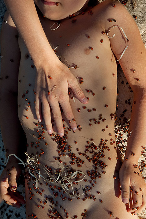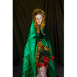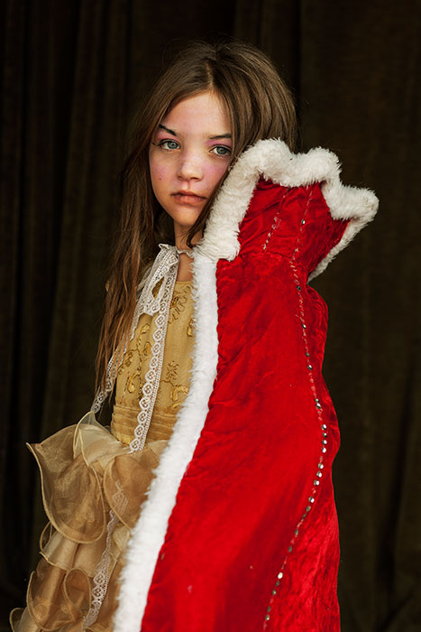 "Sangre de mi Sangre" literally means "Blood of my blood." Part fantasy, part outlet, part passage, this autobiographical work explores the agony and ecstasy of family life, using elements of Renaissance painting, Mexican Catholic symbolism and collage, as well as Victorian hair collection and games to explore the physical and emotional connections between mother and daughters in our Mexican-US bicultural life.